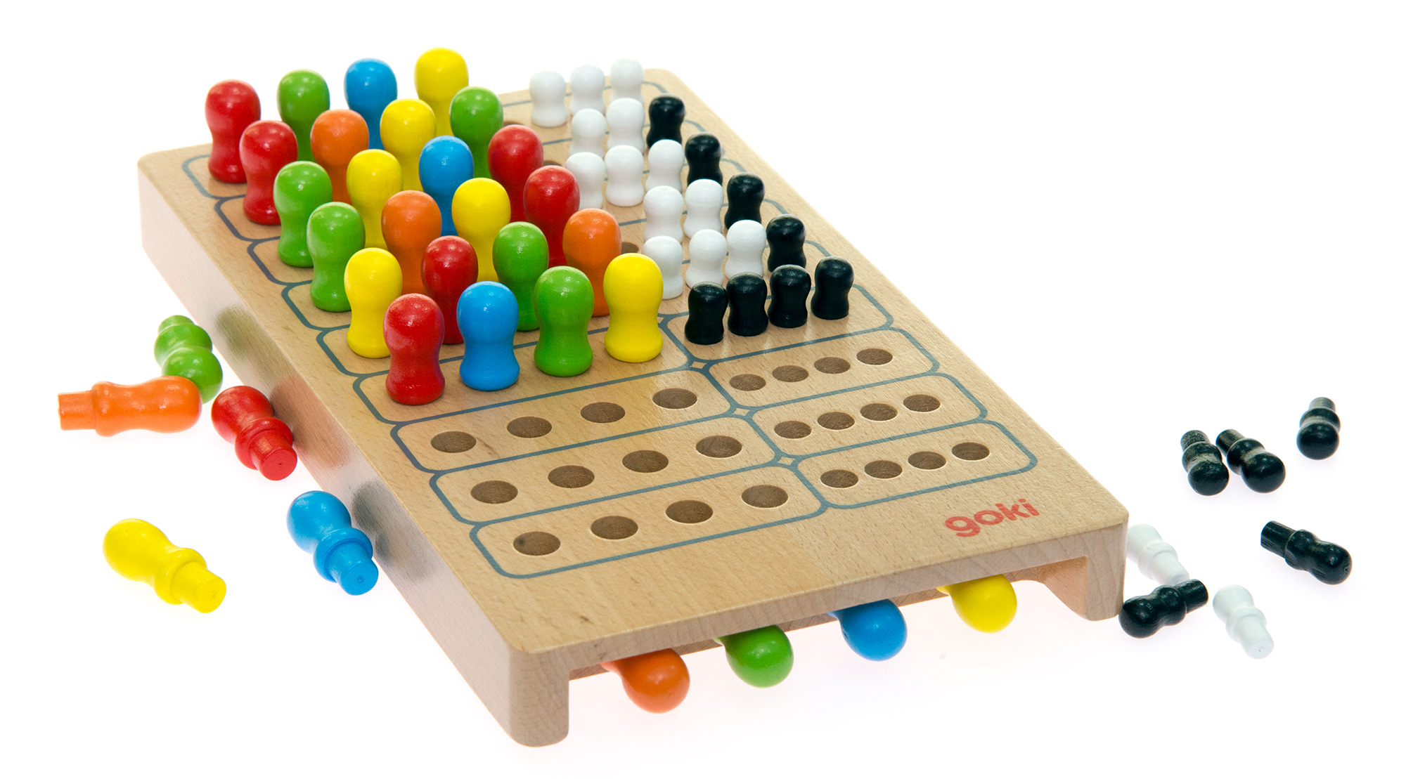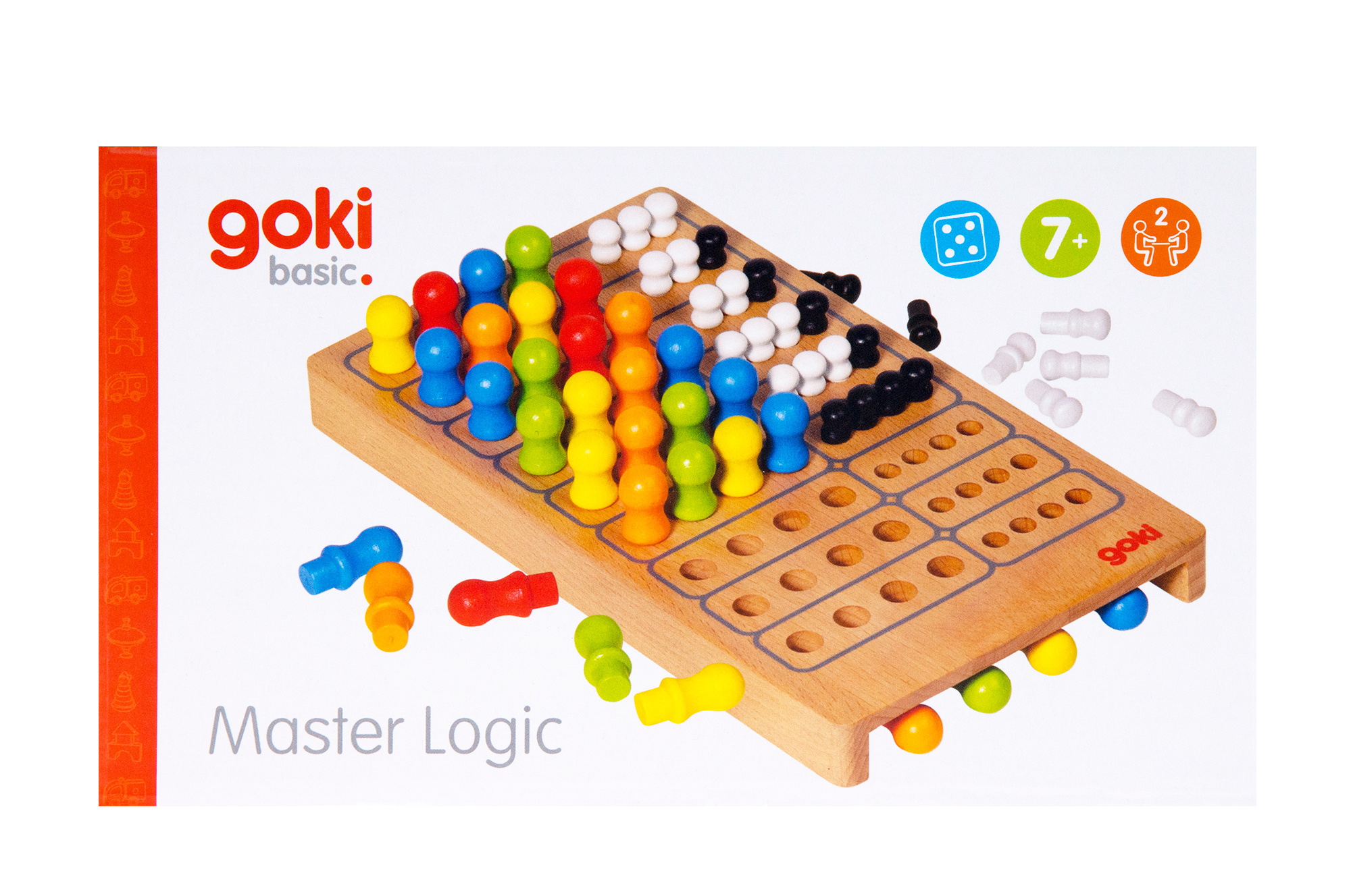 Дерев’яна розвиваюча гра «Майстер логіки» німецького виробника іграшок goki – це гра на логіку та концентрацію. До комплекту настільної гри входять: ігрове поле з отворами, 12 кольорових фішок, 20 – білого та чорного кольору. Мета гри - вгадати 4 прихованікольори супротивника. Переможець гри той, хто найшвидше вгадає «код» опонента. «Майстер логіки» - це чудова гра на розвиток логічного мислення, сприйняття кольору, кмітливість та уважність. Усі деталі гри вироблені із природньої деревини та вкриті яскравими фарбами на водній основі.