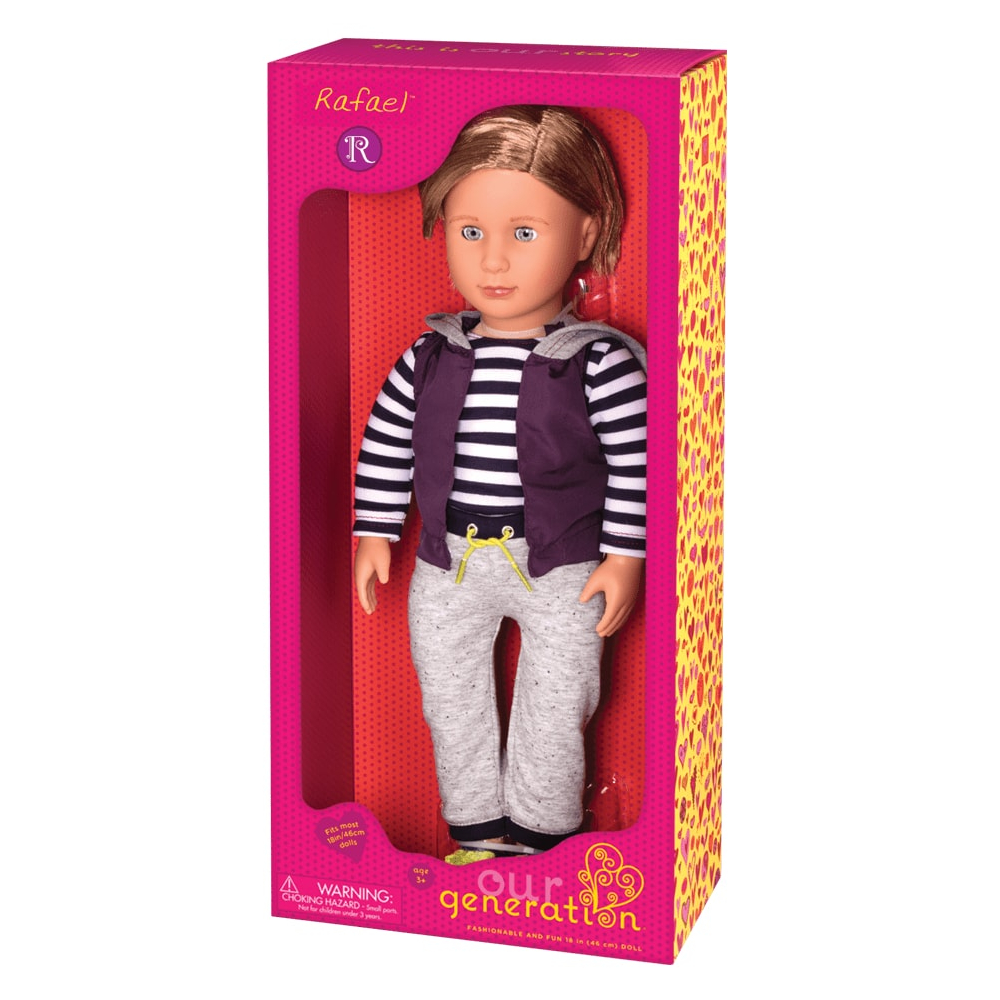 Рафаель – це унікальна лялька з неймовірної серії Our Generation, адже він – хлопчик. Цей милий, стильний та спортивний хлопець стане чудовим доповненням до колекції ляльок Our Generation. Він вихований та, як слідує справжньому джентльмену, має гарні манери. Рафаель активний та веселий, любить прогулянки та гарно проводити час з друзями. Лялька виготовлена з вінілу та має м’яке наповнення. Висота ляльки 46 см. Рекомендований вік : 3+.