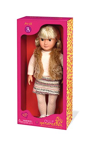 Лялька Аріа - одна з фантастичних ляльок Our Generation. Одягнена вона в білу кофточку з довгими рукавами, коричневу хутряну жилетку, спідничку з смугастим орнаментом, колготки білого кольору і в сірі туфельки з бантиками. У ляльки розкішне світле волосся, яке можна укладати в різні зачіски і красиві карі очі з довгими чорними віями! Іграшка буде допомагати розвивати фантазію і сюжетно-рольову гру у дітей, естетичний смак, допоможе оволодіти новими навичками.