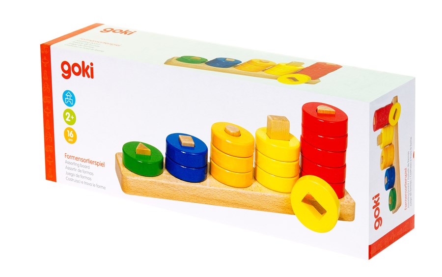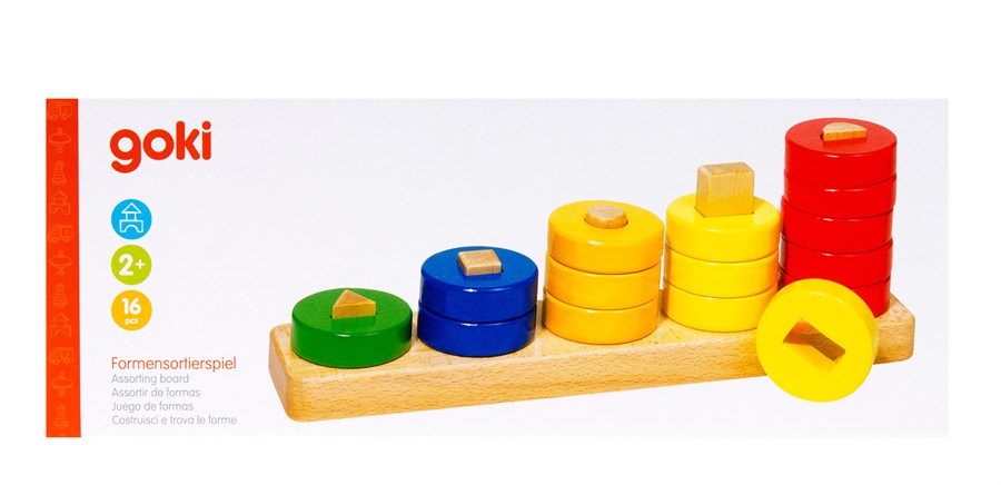 Пірамідка «Вчимо фігури» німецького виробника іграшок goki у цікавій та інтерактивній формі вчитиме дитину фігурам. Пірамідка виконана за принципом сортера, тому дитина взаємодіятиме з фігурами, завдяки чому вчитиметься швидше. Іграшка складається з 15 шайб різних кольорів: зеленого, синього, жовтого, жовтогарячого та червоного. Всі елементи пірамідки зроблені з сертифікованих матеріалів, тому іграшка абсолютно безпечна для дитини. Пірамідка «Вчимо фігури» розвиватиме також моторику та координацію рук та логіку.