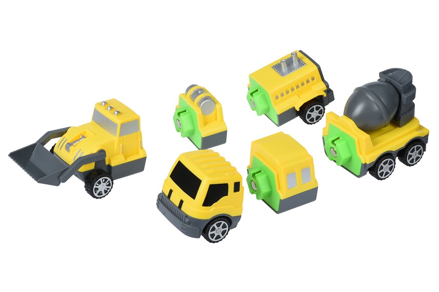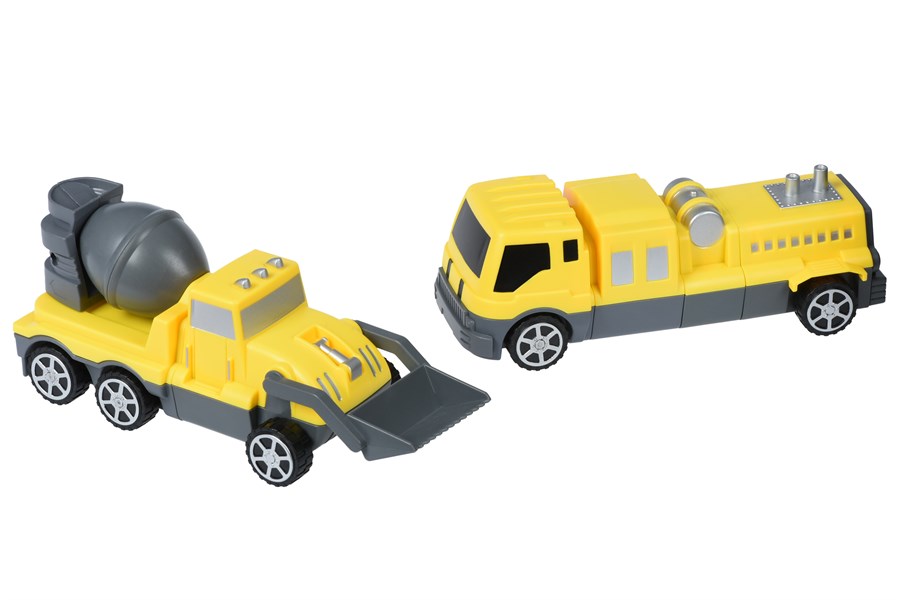 Набір з двох інерційних машинок, якими можна не тільки гратись, а і збирати та розбирати як конструктор. Набір від виробника Same Toy відрізняється магнітними елементами, які легко та швидко поєднуються між собою. Екскаватор та бетонозмішувач складаються із 3-х великих частин. Їх можна чергувати, тим самим змінюючи вигляд спецтехніки. Іграшки вироблені із якісного пластику сірого та жовтого кольору. Для дітей від 3-х років.