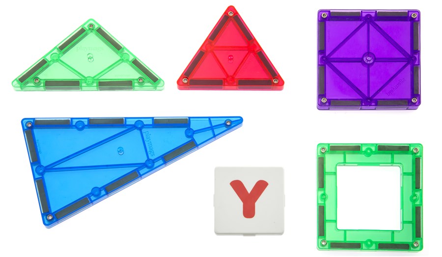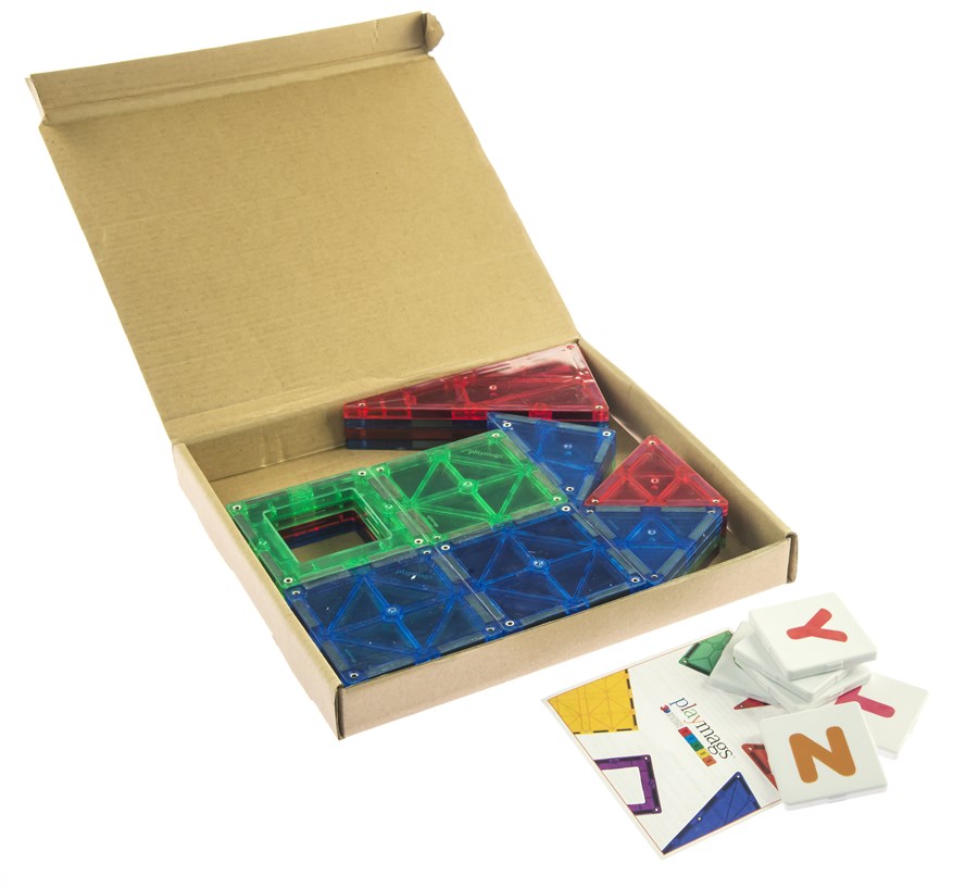 Якісний магнітний конструктор бренду MagPlayer для дітей від 3-х років. Частини набору вироблені із високоякісної напівпрозорої пластмаси. Конструктор складається із 32 геометричних фігур, серед яких: квадрати, віконця, декілька різновидів трикутників. Також до набору входить 6 двосторонніх квадратів з літерами, які вставляються в магнітні форми з отворами. Це дозволить дитині складати написи на власних спорудженнях. Конструктор вчить розрізняти кольори і геометричні форми, сортувати предмети за різними ознаками, вчити англійські літери і слова.