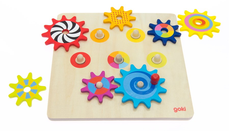 Дитяча розвиваюча гра «Пізнавальні шестерінки» німецького виробника іграшок goki виконана із натурального дерева та кольорових фарб на водній основі. Суть гри полягає в тому, щоб розмістити яскраві шестерінки на площині в певному місці так, щоб запустився механізм їх взаємодії. Правильно розміщені елементи рухаються, переливаючись різними кольорами. Ця іграшка розвиває творчі здібності дитини, моторику рук, логічне мислення та сприйняття кольору. Всі матеріали нетоксичні і безпечні для дитини.