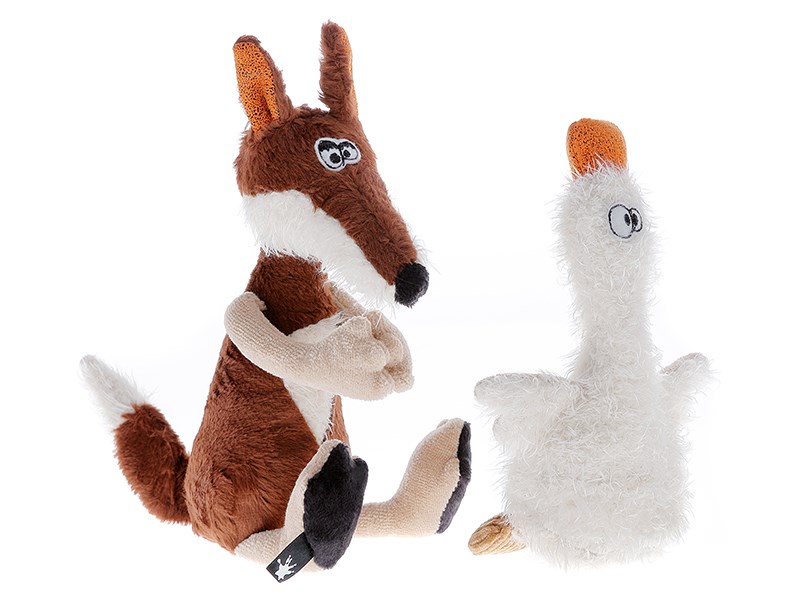 «Ніколи не відпущу тебе!». Кілька років тому, лиса вкрала у старої відьми вечерю зі святкового стола. Відьма помстилась – і приворожила лисицю. З тих пір, лиса більше не може розлучитись з маленькою качкою, яку вона вкрала. Та на жаль, така близькість псує апетит лисиці! Висота іграшок 21 см, вони вироблені із приємного на дотик плюшу. Плюшеві звірі з унікальним дизайном полонять серце кожного! Вони стануть улюбленими іграшками та вірними друзями. Безпечність матеріалів затверджена німецькими стандартами якості, тому іграшка підходить дітлахам від 1 року.
