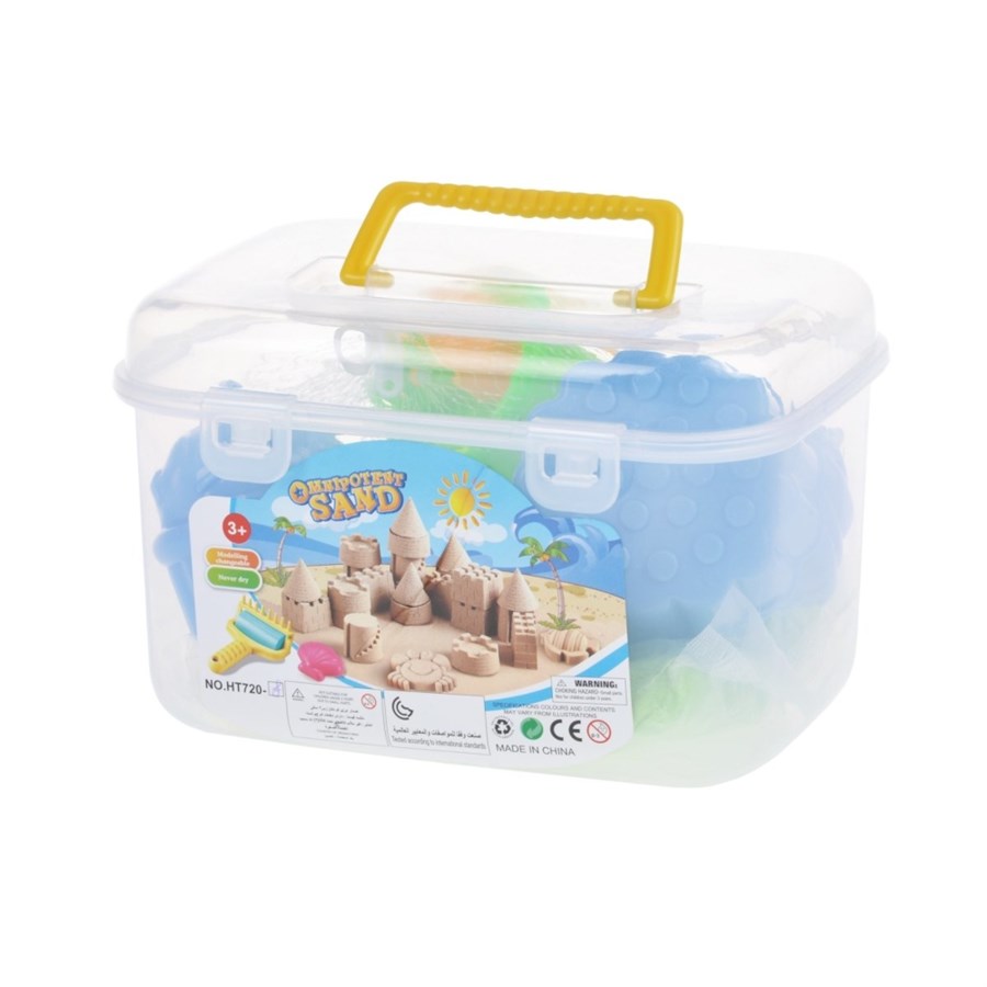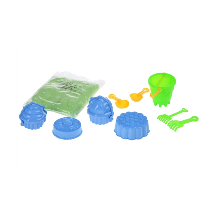 Набір кольорового кінетичного піску допоможе втілити фантазії і проявити талант скульптора. Кінетичний пісок – сучасний матеріал для творчості, він еластичний, в’язкий, з нього можна зліпити неймовірні витвори. Пісок приємний на дотик, він протягом усього часу використання зберігає первинні властивості завдяки в’язкому, абсолютно безпечному, нетоксичному агенту, що входить до складу. У наборі пісок зеленого кольору. Очистити формочки від піску можна чистою водою або вологою тканиною. Для дітей від трьох років.