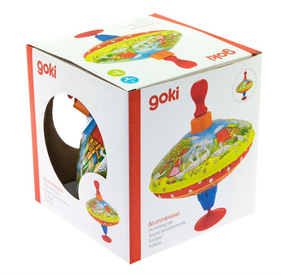 Металева дзиґа «Ферма» німецького виробника іграшок goki не тільки для розваг, а й для розвитку дітей. Іграшка зроблена із металу, вкритого водостійкими фарбами. Ручка ж зроблена із натуральної деревини. Вона легка і практична у використанні. Яскраві кольори та енергійні рухи дзиґи захоплюють та стимулюють зір малечі. Дзиґа – це інтерактивна іграшка, що розвиває координацію рухів та спритність.