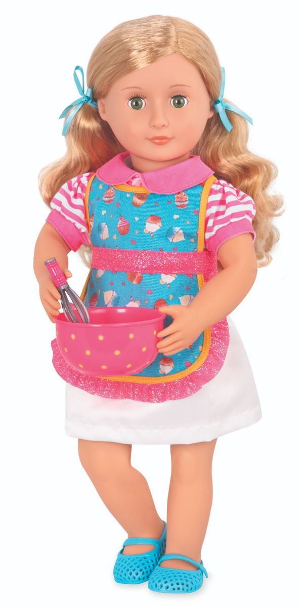 Лялька Jenny Our Generation з колекції Deluxe Dolls готова зробити смачні десерти! Вона любить пекти, тому в наборі є багато різних аксесуарів для випічки. Ви можете прочитати про її пригоди в пекарні Sweet Shoppe (книгу англійською мовою) і навчитися готувати. Гра з лялькою допоможе розвинути фантазію і рольову гру, надати естетичний смак.