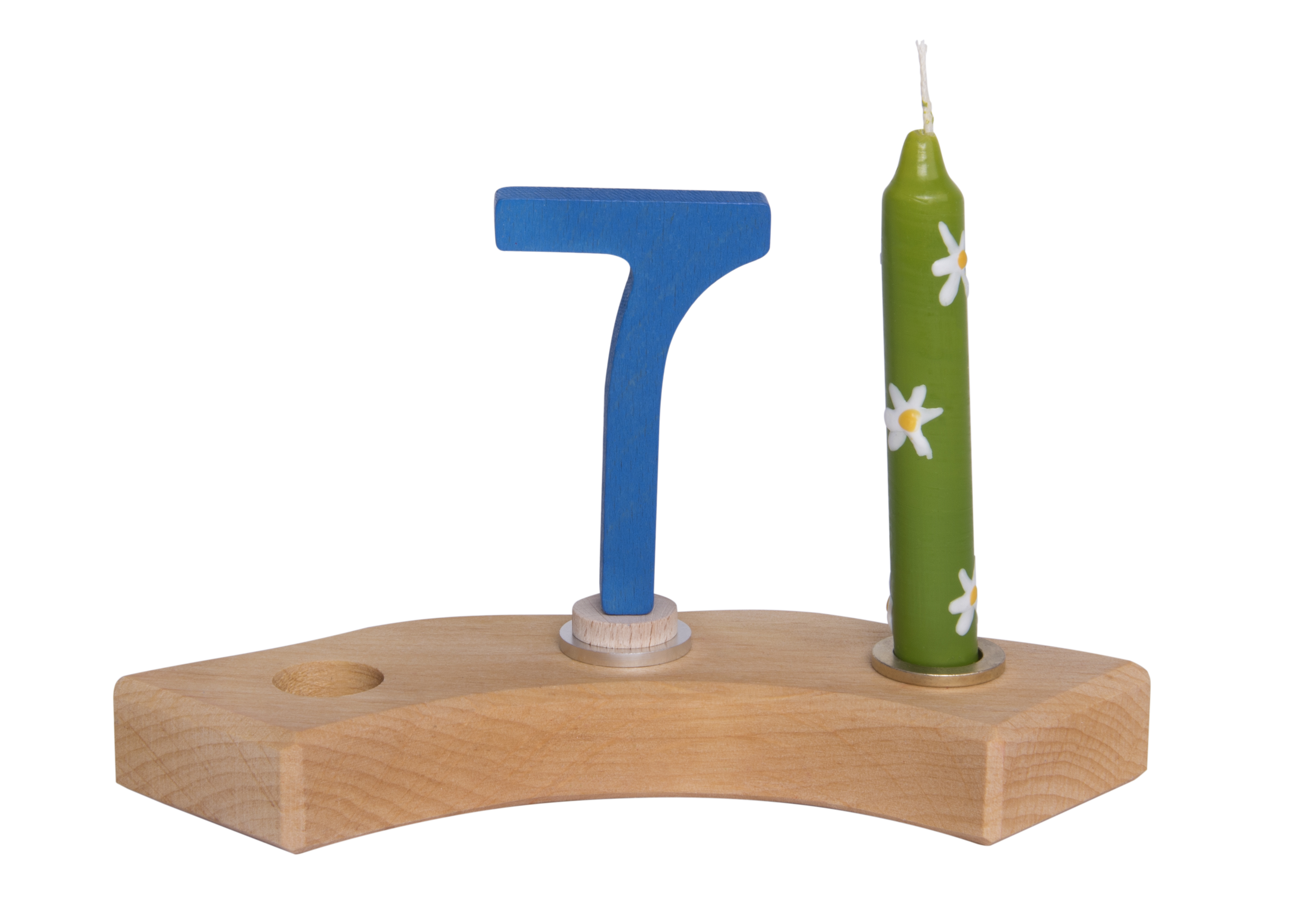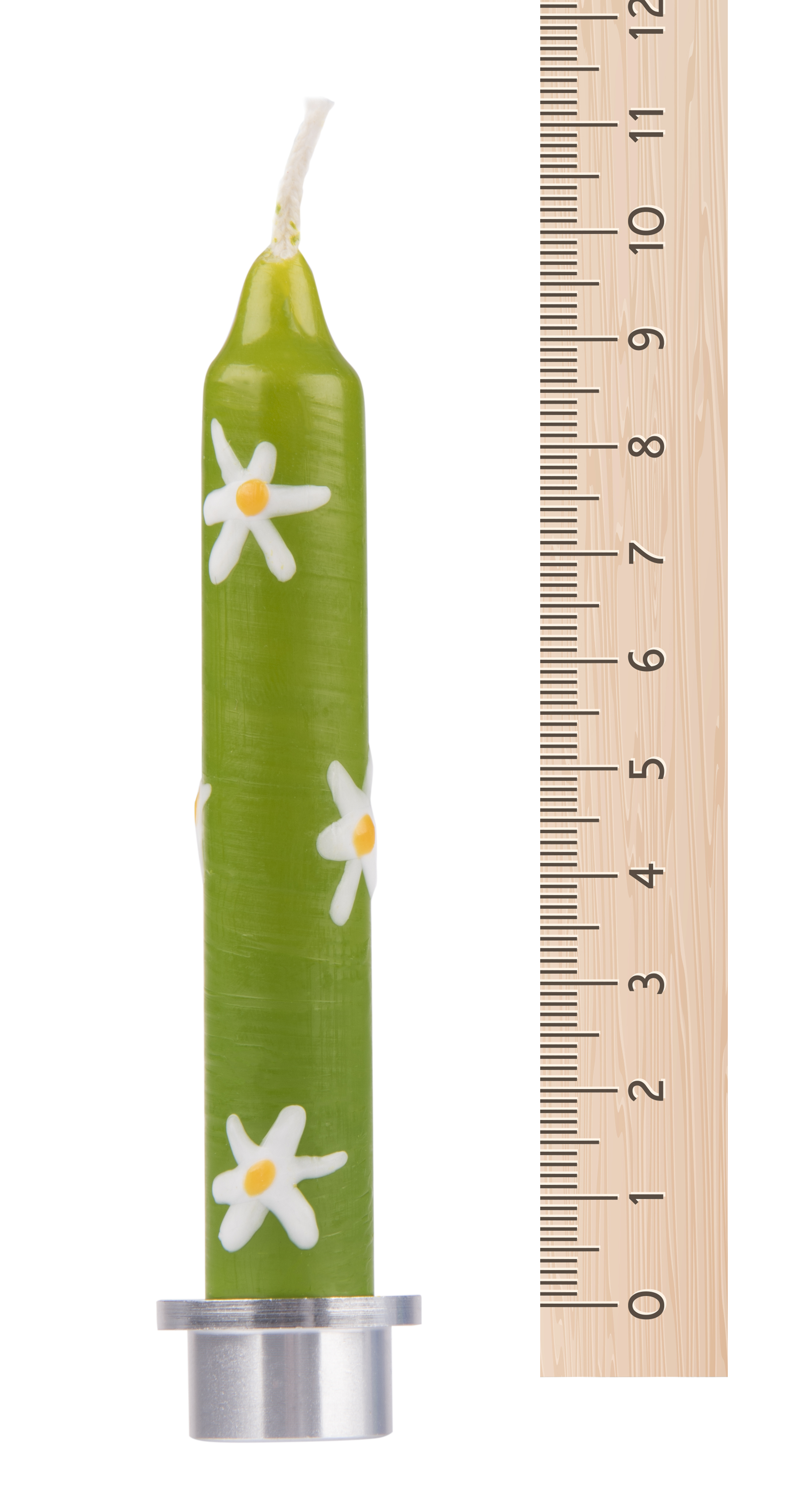 Усі обожнюють загадувати бажання у свій День народження, тому святкові німецького виробника іграшок nic неодмінно стануть у нагоді. Воскова свічка «Квіти» упакована у прозору захисну плівку. Розмір аксесуару – 10 см, діаметр - 14 мм. Свічка зеленого кольору, прикрашена білими квітками. Святкові свічки підходять до металевих підсвічників nic, які потім вставляються у дерев’яний святковий потяг nic. Свічки nic особливі тим, що не димлять і не коптять під час горіння