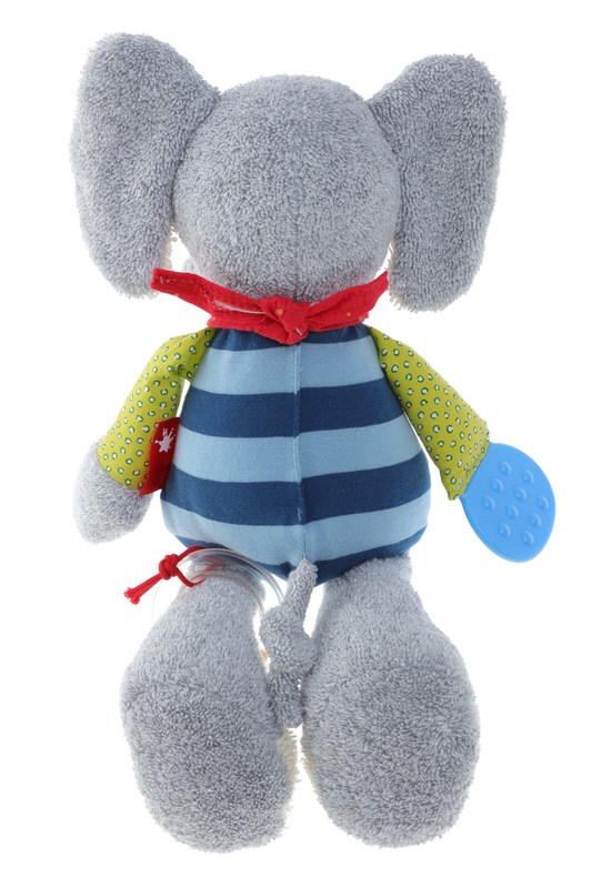 Інтерактивна іграшка слоник - для перших відкриттів дитини. Іграшка оснащене безліччю деталей, що спонукають дитину до руху і пізнання нових текстур. Особлива іграшка сприятиме всебічному розвитку дитини з самого народження. А для немовлят слоник спеціально оснащений прорізувачем; діти можуть гризти іграшку, вона абсолютно безпечна і не нашкодить. Окрім того, іграшка може «брязкати», або «скрипіти». Підвіски-брязкальця спонукатимуть дитину до руху, завдяки чому вона розвиватиме тактильне, сенсорне, слухове сприйняття. Розмір іграшки: 28х7х10 см. Для дітей від народження.
