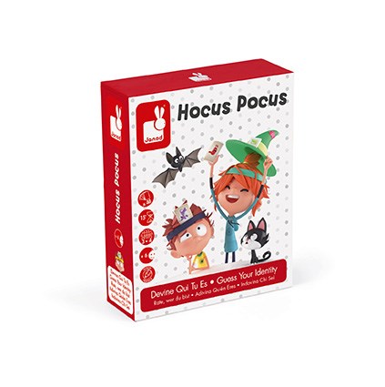 Настільна гра Фокус-покус від французького бренду Janod призначена для дітей у віці від 6 років, кількість гравців: 3-4, тривалість гри: 15 хв. Мета гри - першим вгадати хто ти (відгадати картку, яка розташована у гравця на лобі) або позбутися від усіх своїх карт.