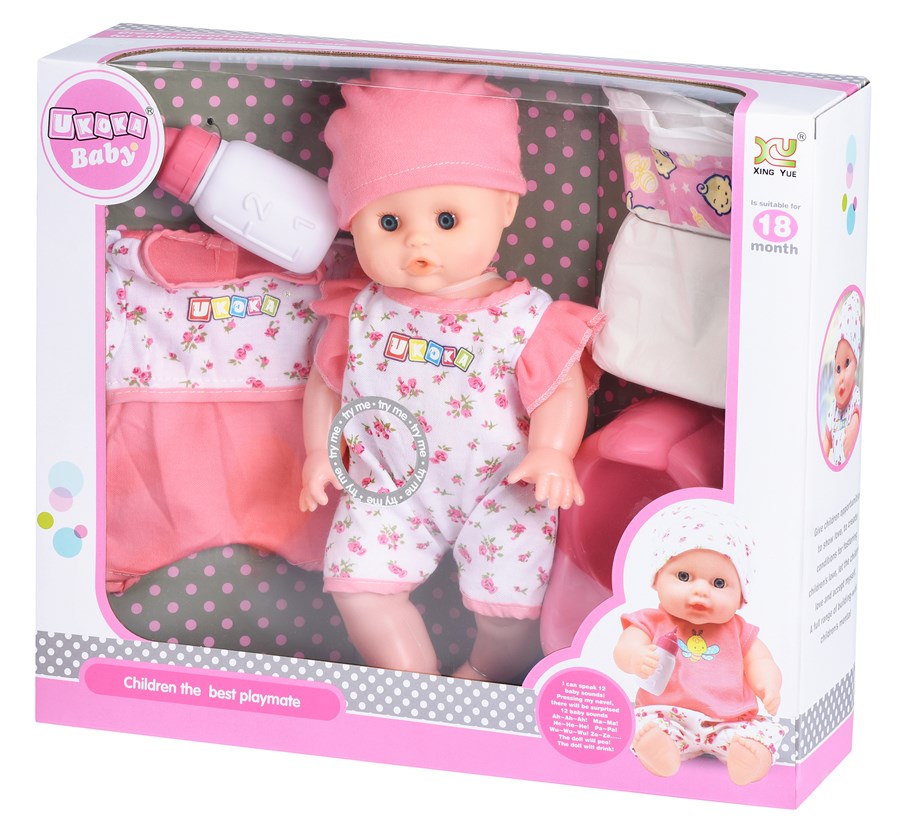 Пупсик-немовля - це найпопулярніша іграшка для дітей. Пупс бренду Same Toy - це лялька невеликого розміру, виконана з легкого і міцного полікарбнату та гуми. Тому дитина може брати ляльку з собою в садочок, школу чи в парк. Лялька говорить слова, плаче та сміється. В комплект входять пляшечка, горщик та підгузок. Також лялька має додатковий одяг - красивий комбінезон. Пупсика можна годувати, переодягати та купати. Довжина ляльки: 35 см. Лялька адаптована для дітей від 18 місяців.