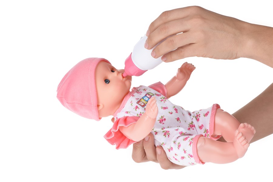 п'є з пляшки, зі звуковими ефектами, ходить на горщик
