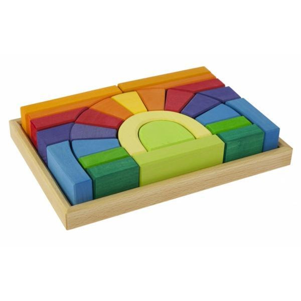 Різнобарвний дерев'яний конструктор «Міст» сяє веселковими барвами і грає велику роль для развітіяма