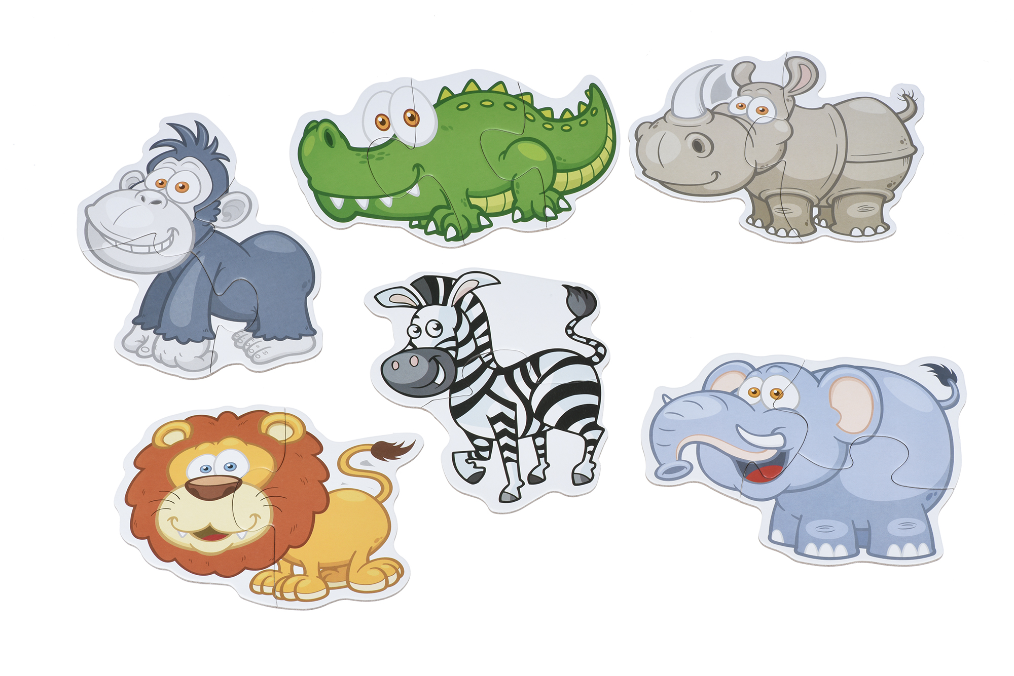 Пазл «Джунглі» містить деталі для зборки 6 фігурок тварин. Фрагменти виготовлені з щільного, твердого картону. Їх можна складати необмежену кількість разів і вони не піддаються пошкодженням. Зображення нанесено нетоксичними фарбами. набір в коробці. Виробник рекомендує пазли для самих маленьких від 18 місяців.