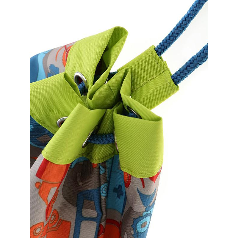Сумка sigikid – функціональна річ для походів на спортивні секції, гуртки, додаткові заняття. Всередині дитина зможе помістити всі необхідні речі: змінний одяг, взуття, інвентар. Сумка має одне відділення, яке стягується за допомогою шнурків. Шнури також виконують функції шлейок рюкзака. Стильна сумка блакитного і зеленого кольорів із зображенням автомобілів.