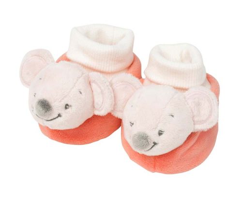 Чудовий та милий аксесуар для дитини стилізований під персонажа серії Nattou – мишку Валентину. Пінетки дуже зручні і будуть зігрівати ніжки вашого малюка. Виготовлені з якісного і безпечного поліестеру. Можна прати за температури 30° С.