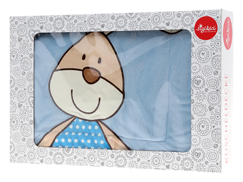 М’якенька блакитна ковдра із малюнком зайчика від німецького бренду sigikid. Ковдра вироблена із напрочуд приємного матеріалу – поліестеру, безпечність матеріалу затверджена німецькими стандартами, тому його можна використовувати від народження. Розміри: 100 х 75 х 2 см. Дітлахам буде приємно вкриватись ним, а сни будуть спокійними та солодкими.