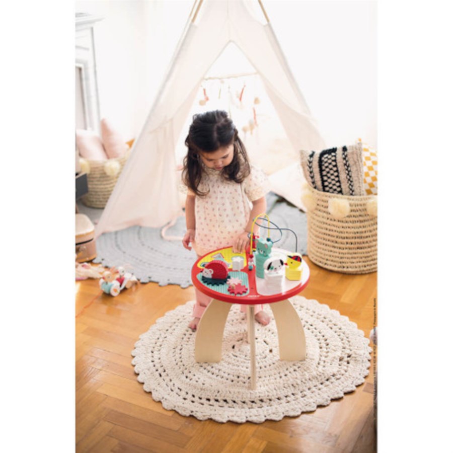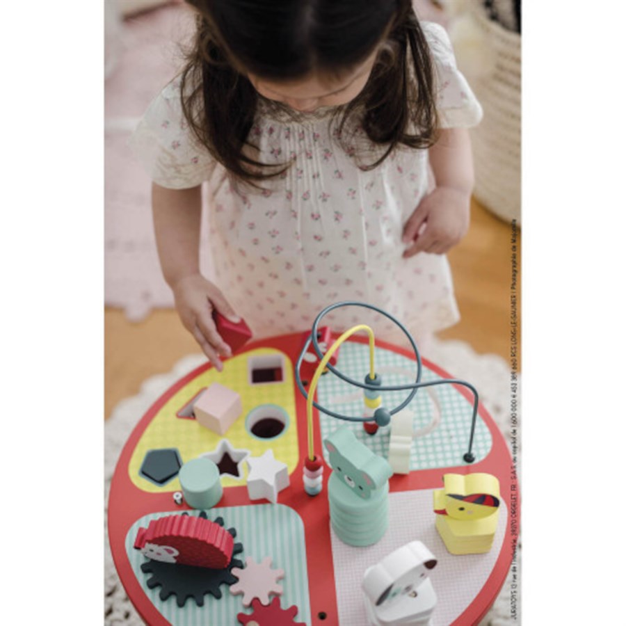 Яскравий інтерактивний навчальний простір для дитини, який обов’язково стане улюбленою частиною у кімнаті малюка. Ігровий столик від французького бренда Janod являє собою ергономічну конструкцію, яка має багато елементів та розвивальних функцій. Столик виготовлений із натурального дерева, тож є абсолютно безпечним для дитини. У комплекті різнокольорового та яскравого столику фігурки тваринок та різноманітні геометричні форми. Граючи за столиком дитина вивчатиме нових тварин, розвиватиме логічне мислення та дрібну моторику рук. Розмір іграшки: 40 х 40 х 56 см. Рекомендований вік:1+