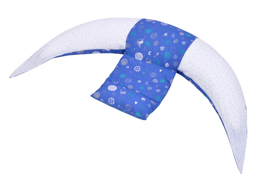 Подушка DreamWizard для вагітних від італійського бренда Nuvita – абсолютний «must-have» для майбутньої мами. Вона має європейський сертифікат медичних засобів 1-го класу, та чудово підходить для покращення стану у ногах і комфортного відпочинку. Пересувна додаткова подушка дозволяє налаштувати комфортне положення в залежності від зросту вагітної та стадії її вагітності. Nuvita DreamWizard забезпечує і підтримку дитини під час годування. Матеріал наволочки – найкращий для контакту з дитячою шкірою. Матеріал наповнювача водонепроникний, гігієнічний, нетоксичний і легкий. Подушка блакитного кольору з абстрактними елементами.