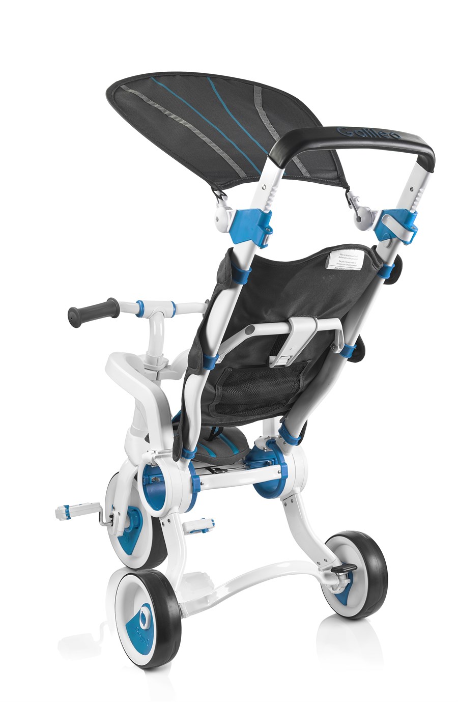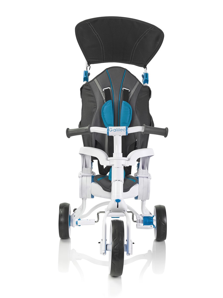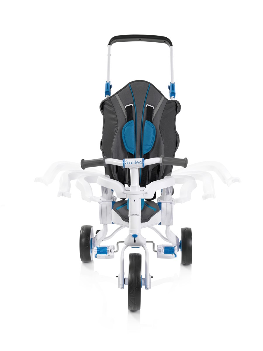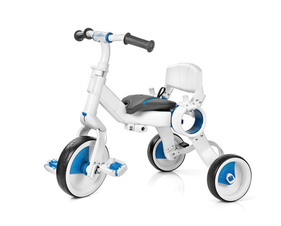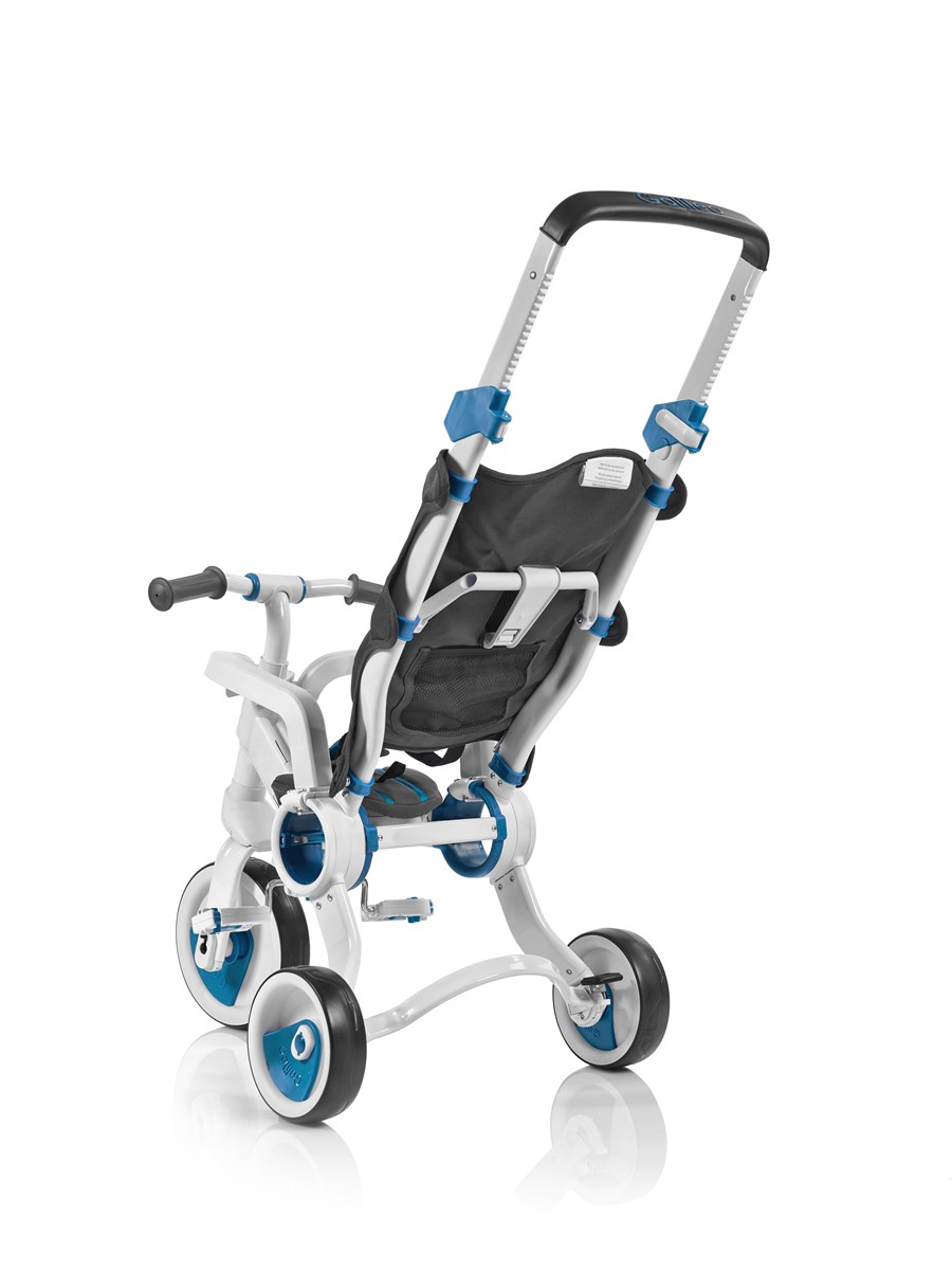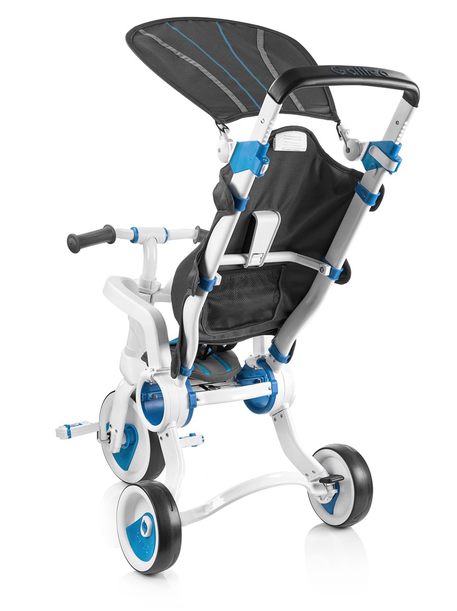 Триколісний велосипед Galileo Strollcycle – сучасний, багатофункціональний і зручний транспортний засіб для дітей. Це своєрідний трансформер: водночас і велосипед, і коляска. Стильний дизайн одразу привертає до себе тисячі поглядів. Та головне, що виробник подбав про безпеку дитини – велосипед оснащений низкою запобіжників і ременями безпеки. Білосніжно-блакитний велосипед вирізняється компактністю як у зібраному, так і в розібраному стані. Вага велосипеда – 6, 5 кг. Розмір у складеному вигляді – 75 х 23 х 49 см, у розкладеному – 85 х 49 х 83 см. Призначений для дітей від 10 місяців, витримує навантаження до 25 кг. Діаметр коліс – 15,5 і 22 см. Транспорт легко складається одним рухом і розкладається, його зручно переносити і зберігати, він не займає багато місця вдома чи в багажнику автомобіля. Постачається велосипед у фірмовій коробці.
