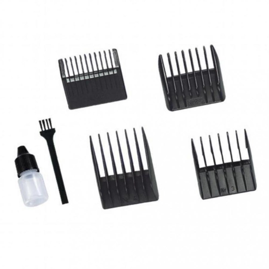4 знімні насадки (3, 6, 9, 12 мм), гребінець, ножиці, масло, щітка для очистки
