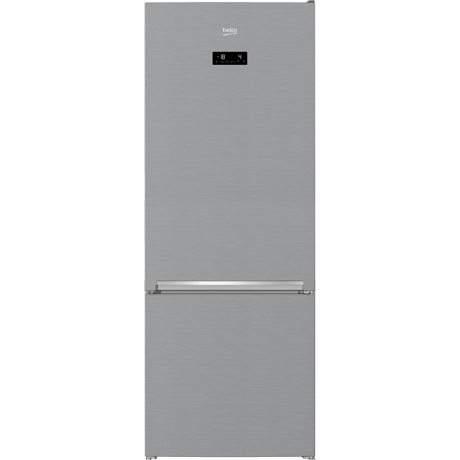 Холодильник з морозильною камерою Beko RCNE560E35ZXB відноситься до класу енергоспоживання А++ і управляється сенсорними кнопками з зовнішнього дисплея. Прилад є дводверним агрегатом, оснащеним одним поршневим компресором з двома окремо охолоджуваними контурами. Холодильна камера моделі, обємом 356 літрів, обладнана відділенням для овочів і фруктів з технологією HARVESTfresh, що імітує добовий сонячний цикл. За допомогою спеціальних ламп вона відтворює природне середовище для дозрілих плодів, таким чином тривалий час зберігаючи в них концентрацію вітамінів і корисних речовин. Крім того, функція Everfresh дозволяє регулювати вологість в цьому контейнері, збільшуючи термін зберігання фруктів та овочів до 30 днів. Тривало і якісно зберігати продукти допомагають прискорене охолодження і багатопотокова система охолодження. Морозильний відсік, ємністю 145 літрів, розташований знизу і оснащений технологією швидкої заморозки їжі, для зручного розміщення якої є три прозорих містких висувних контейнера. Функціонування холодильника Beko RCNE560E35ZXB контролюється системою самодіагностики, яка повідомляє користувача в разі виникнення неполадок в роботі. Немає необхідності в регулярному розморожуванні пристрою - обидві його камери мають технологію No Frost, що не допускає утворення льоду і інею.