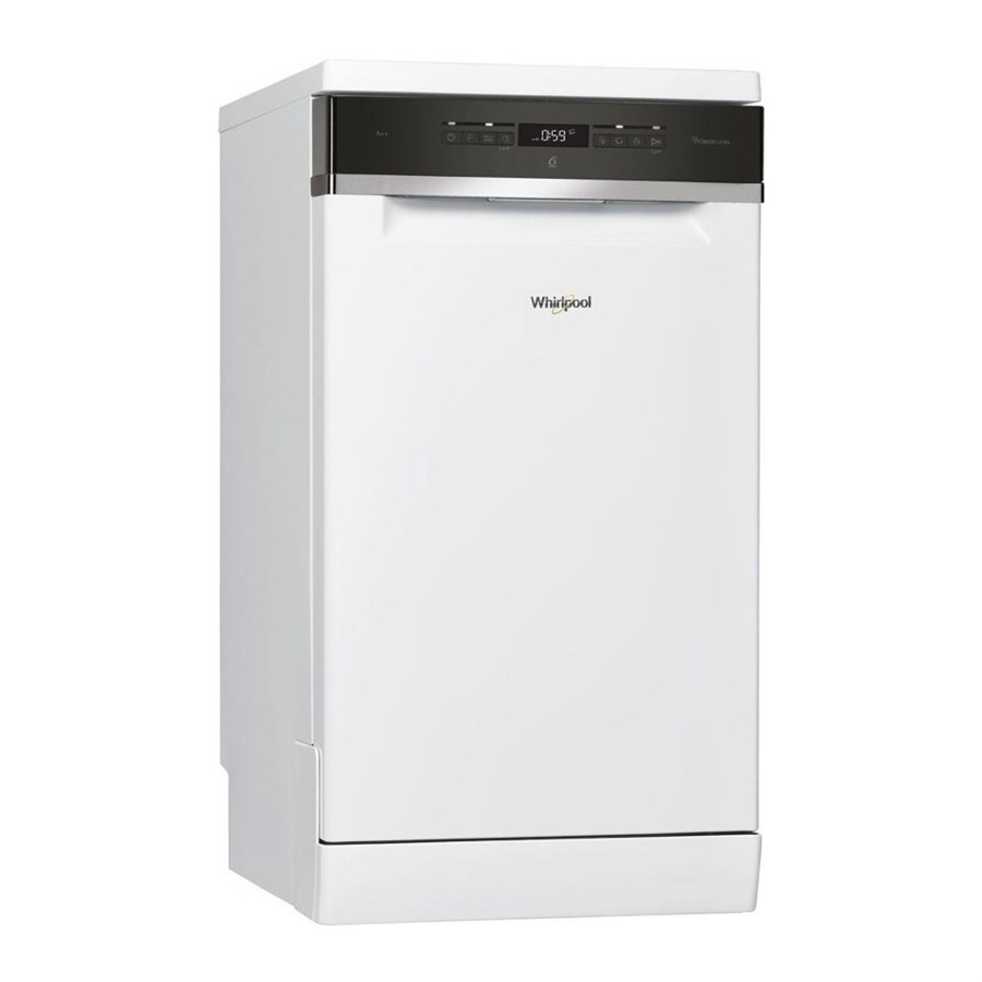 Компактна посудомийна машина Whirlpool WSFO 3O23 PF з шириною 45 см - окремо розташований прилад, який можна зручно розмістити на невеликій кухні. Модель відноситься до класу енергоспоживання А++ і виконує 7 автоматичних програм миття, використовуючи 4 температурні режими нагріву води. Пристрій за один раз зможе вимити до 10 стандартних комплектів посуду, витрачаючи на це 9 літрів води. Попереднє полоскання забезпечить ефективне видалення засохлих харчових залишків на посуді, виконавши спочатку його замочування. Внутрішня камера машини обладнана двома кошиками, верхній з яких можна регулювати по висоті для розміщення габаритного і нестандартного посуду. Шухляда для столових приладів, тримачі для склянок і чашок і складні роздільники розширюють можливості приладу і забезпечують ефективну і якісну очистку посуду. Функціональна посудомийна машина Whirlpool WSFO 3O23 PF управляється електронними кнопками, а на її панелі відображається інформація про режими роботи та наявності миючого засобу.