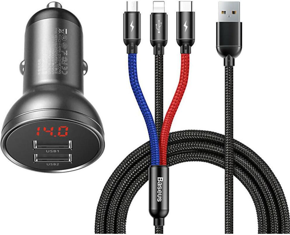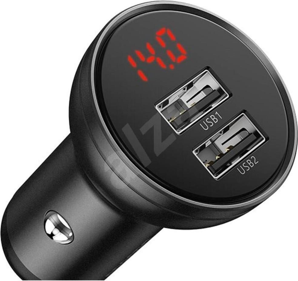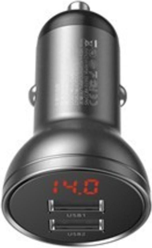 АЗП Baseus Digital Display Dual USB 4.8A Car Charger 24W, Grey
