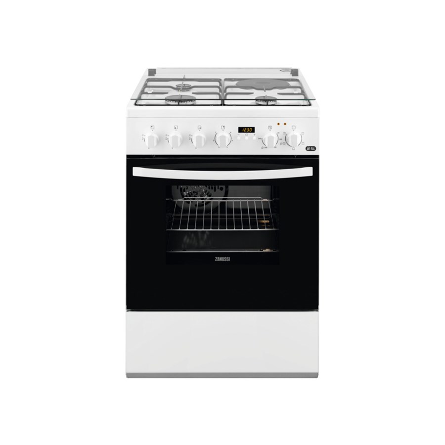 Плита Zanussi комбінована 3 газ + 1 електро, 57л, 60x60см, дисплей, конвекція, білий