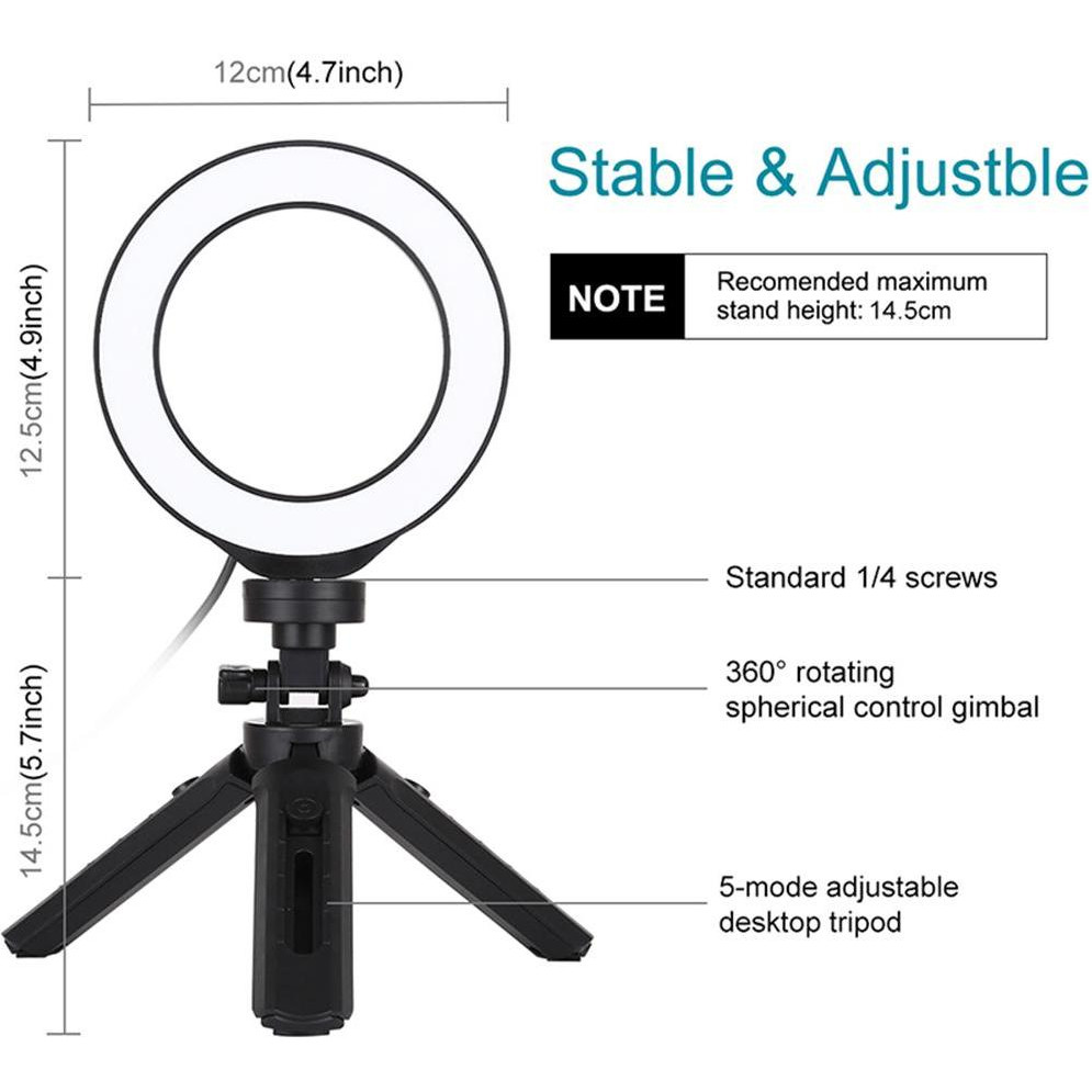 Кільцева USB LED лампа Puluz PKT3058B 4.7 + штатив 12 см