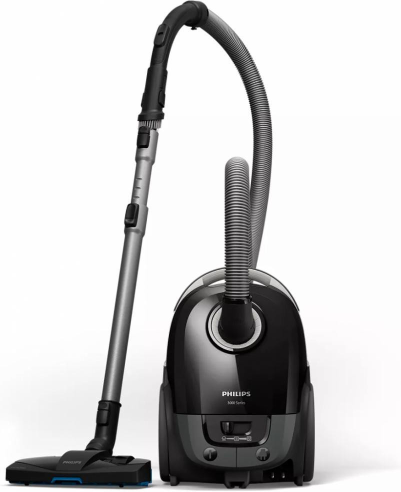 Пилосос із мішком Philips XD3112/09 виготовлений в сучасному стильному дизайні в компактному корпусі суворого і практичного чорного кольору. Він обладнаний електромотором потужністю 900 Вт і служить для проведення якісного сухого прибирання. Висока і постійна сила всмоктування забезпечується конструкцією пилозбірника, що реалізує технологію AirflowMax: всередину надходить швидкий потік максимального обєму повітря, який не допускає виникнення засмічень. Сміття накопичується в одноразовому 3-літровому мішку s-bag Classic Long Performance, який після заповнення замінюється новим. Модель комплектується трьома насадками для різних типів покриттів. Особливо слід відзначити багатофункціональну насадку TriActive, що всмоктує пил і сміття з трьох напрямків. Її підошва глибоко очищує килими, отвір спереду захоплює великі частинки сміття, а бічні канали збирають пил уздовж стін і предметів меблів. Пилосос із мішком Philips XD3112/09 забезпечений НЕРА фільтром Allergy H13, через який проходить віхідне повітря, залишаючи на ньому 99,9% частинок пилу і алергени.