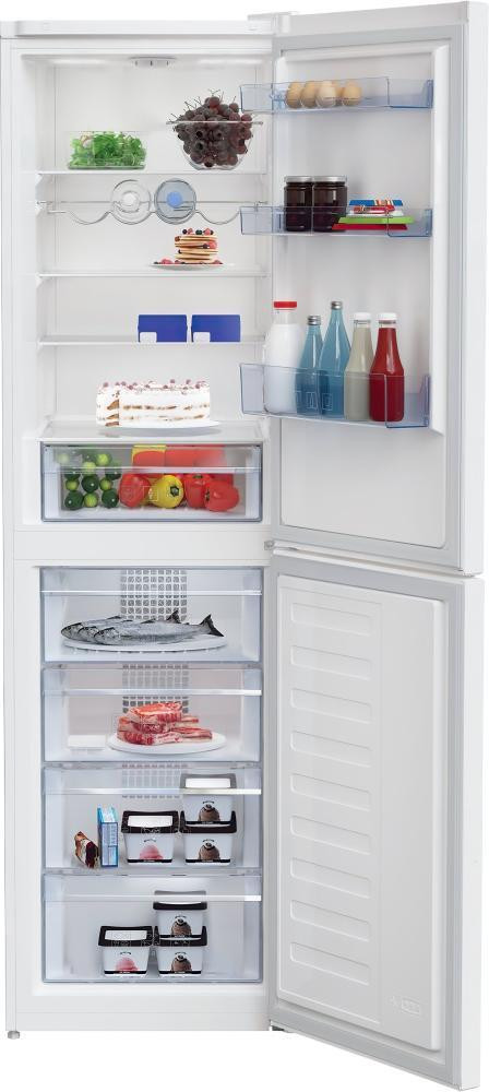 Холодильник з морозильною камерою Beko RCHA386K30W виготовлений в двухдверном конструктивному виконанні в традиційному білому кольорі. У моделі класу енергоспоживання А ++ реалізована одноконтурна схема охолодження, циркуляція холодоагенту по якій виконується надійним поршневим компресором з низьким рівнем шуму - до 40 дБ. Холодильне відділення, обсягом 215 літрів, оснащений системою швидкого охолодження. Продукти в ньому розміщуються на трьох скляних полицях і в двох контейнерах для овочів і фруктів. Морозильний відсік, ємністю 143 літра, розташований знизу. Він укомплектований чотирма прозорими висувними ящиками. Функція швидкої заморозки зберігає природний колір і смак їжі, збільшуючи термін її зберігання. Технологія No Frost морозильної камери запобігає утворенню льоду і інею. У холодильній камері реалізована система автоматичної (крапельної) розморожування.