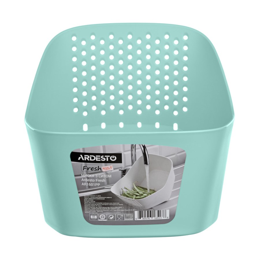 Миска з ситом Ardesto Fresh блакитний тіфані (AR1601TP)
