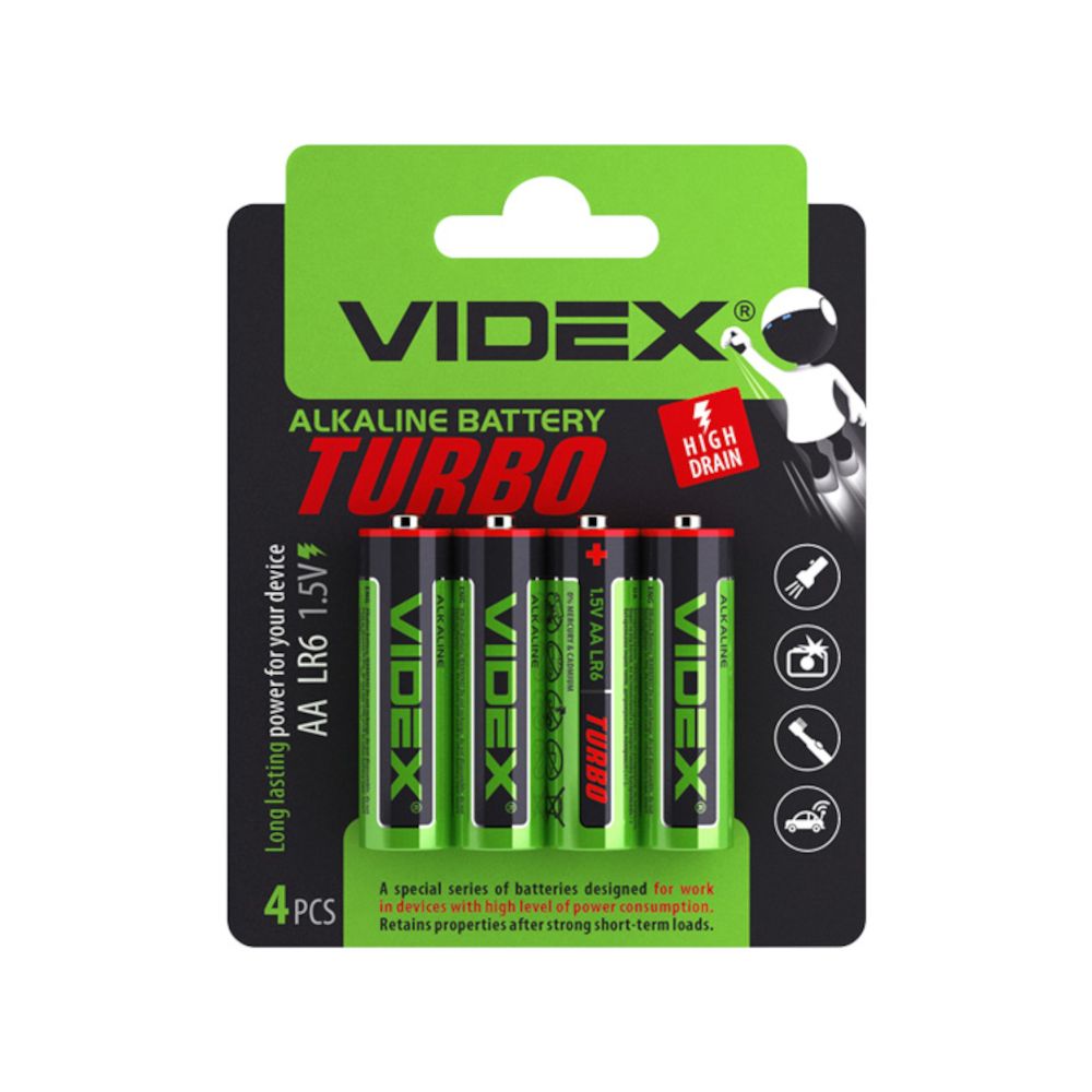 Батарейка Videx LR6/AA Turbo 4шт BLISTER (40/720), лужна