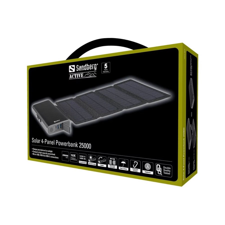 Зовнішній акумулятор сонячний Powerbank 4-PANEL 8W SANDBERG PD 25000 MAH, 2XUSB, TYPE-C OUT (420-56)