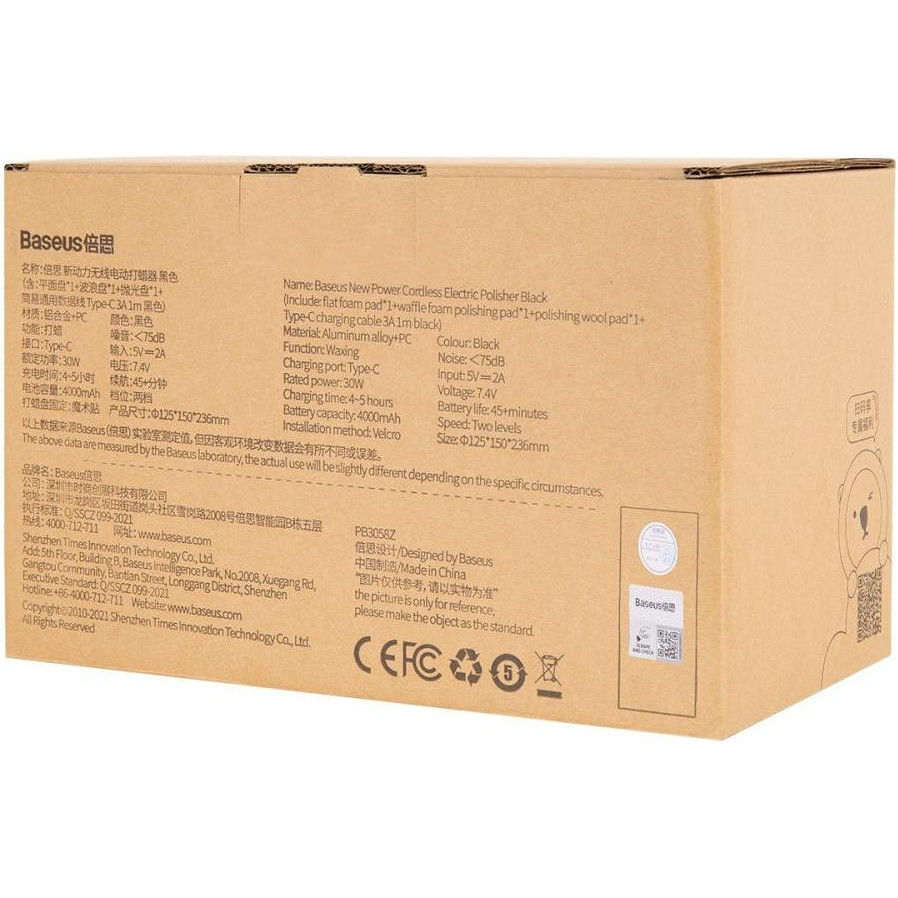 Пристрій для полірування автомобіля Baseus New Power Cordless Electric Polisher Black