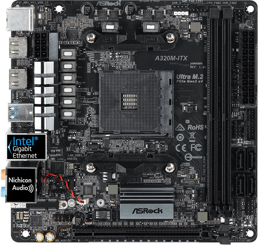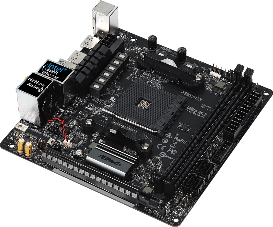 Материнcька плата ASRock A320M-ITX sAM4 A320 2xDDR4 2xHDMI Type-C SPDIF mITX