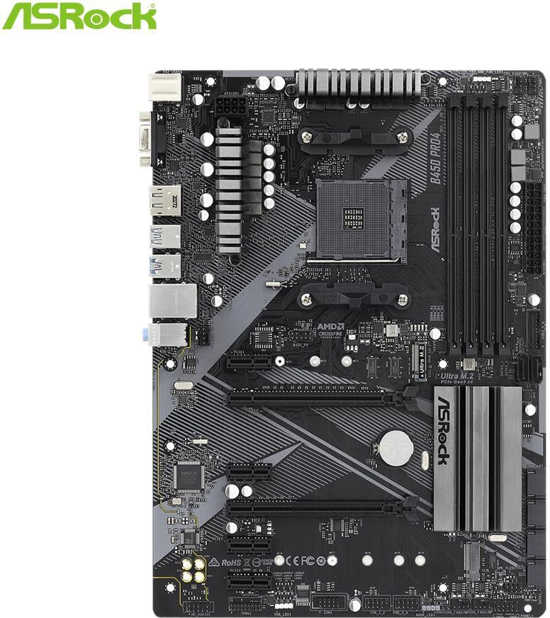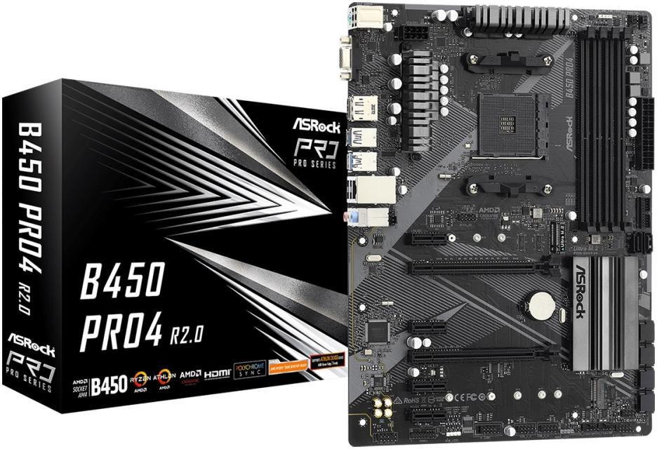 Материнська плата ASRock B450 Pro4 R2.0 sAM4 B450 2xM.2 4xDDR4 DVI HDMI VGA ATX