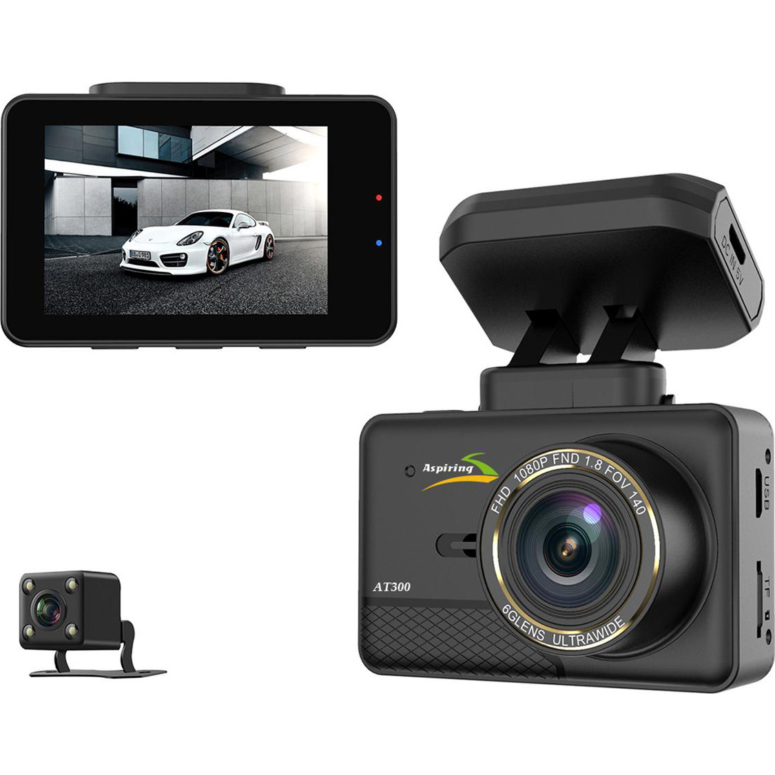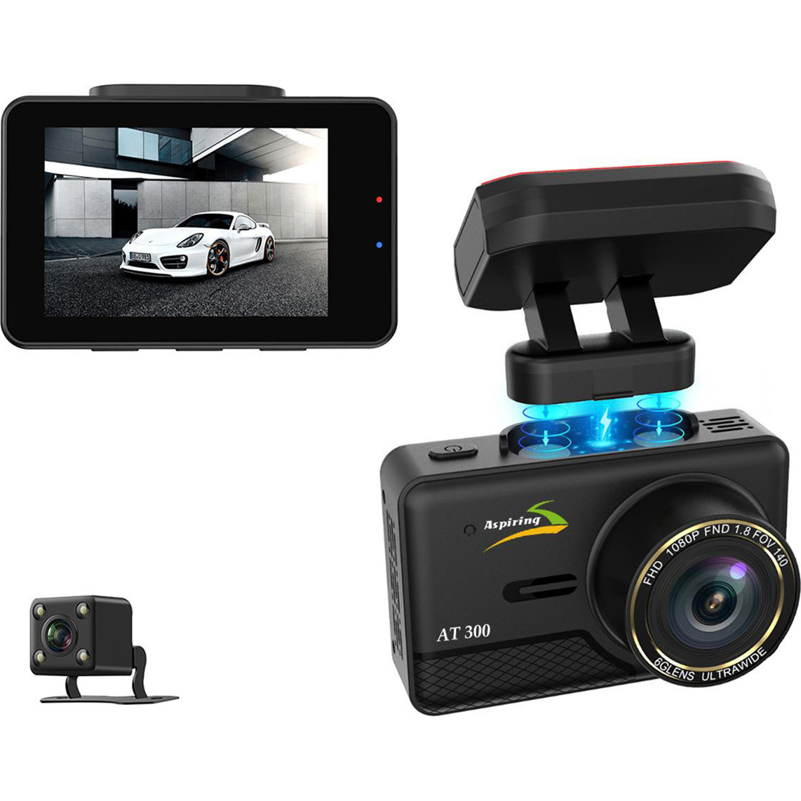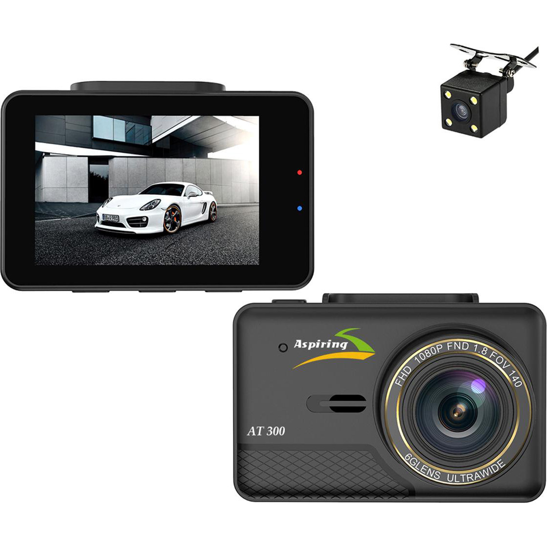 Відеореєстратор,Aspiring AT300 Speedcam, GPS, Dual(AT555412), 2304x1296, 30fps, 170°, 2.35IPS, microSD до 64GB, 2 камери