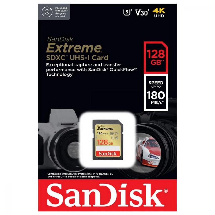 Карта пам'яті SanDisk SD  128GB C10 UHS-I U3 R180/W90MB/s Extreme V30