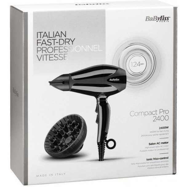 Фен Babyliss, 2400Вт, 3 режими, дифузор, іоніз-я, хол. обдув, чорний
