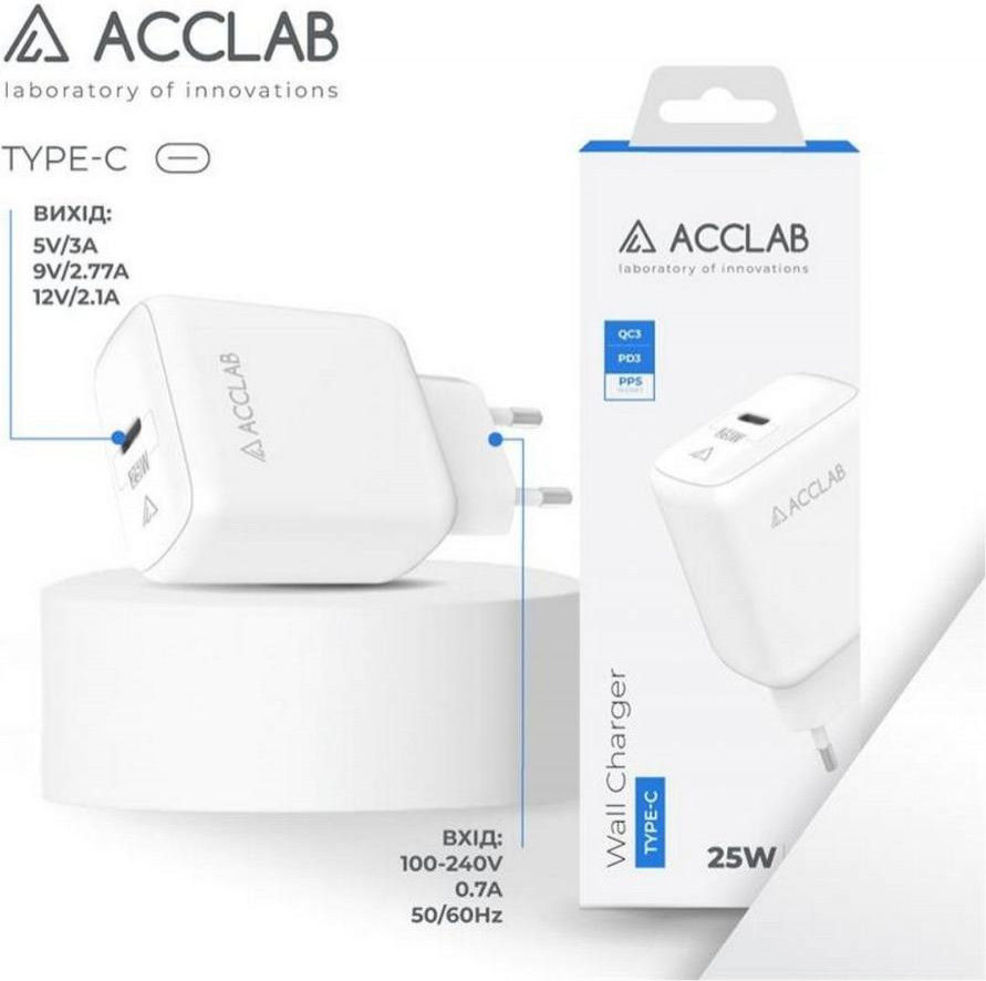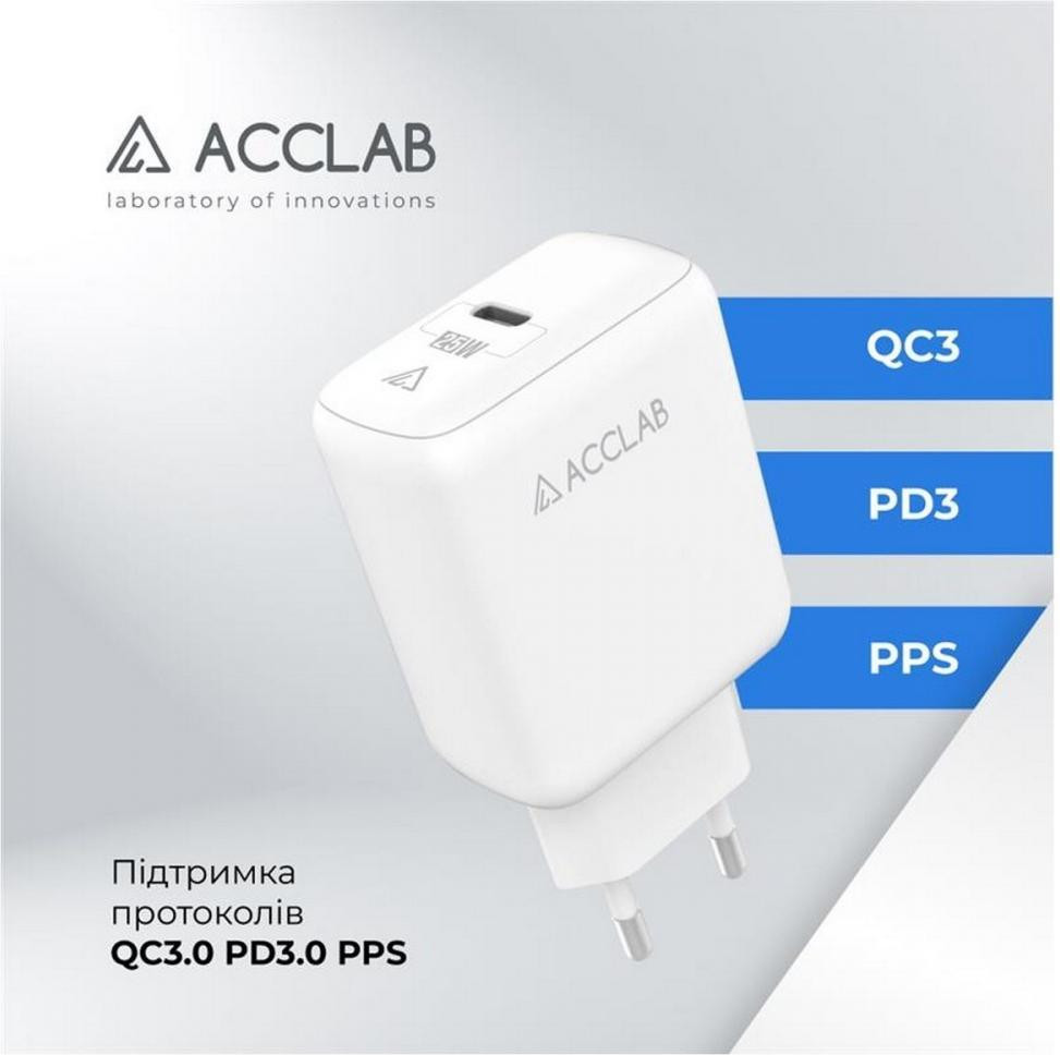 МЗП AccLab AL-TC125 1хType-C 5В/3A/25W QC/PD 3.0 White