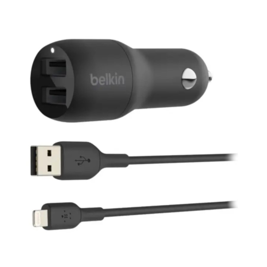 Автомобільний Зарядний Пристрій Belkin Car Charger (24W) Dual USB-A, USB-A - Lightning 1м Black
