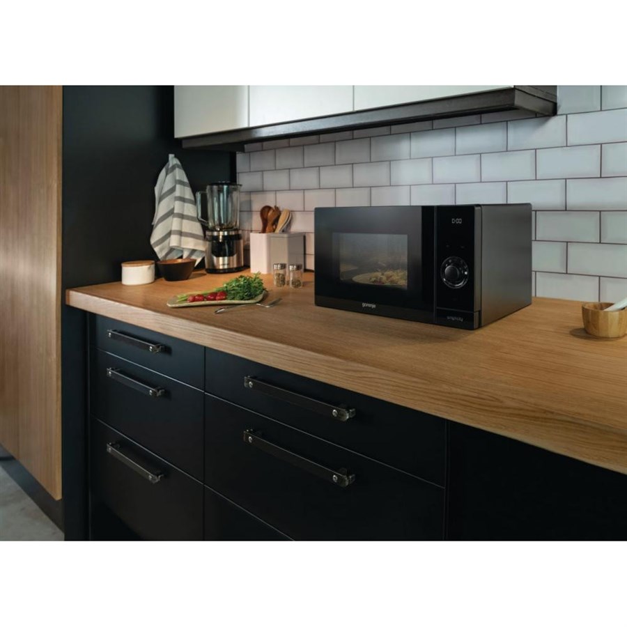 Мікрохвильова піч Gorenje Simplicity, 23л, мех. керув., 900Вт, гриль, дисплей, чорний