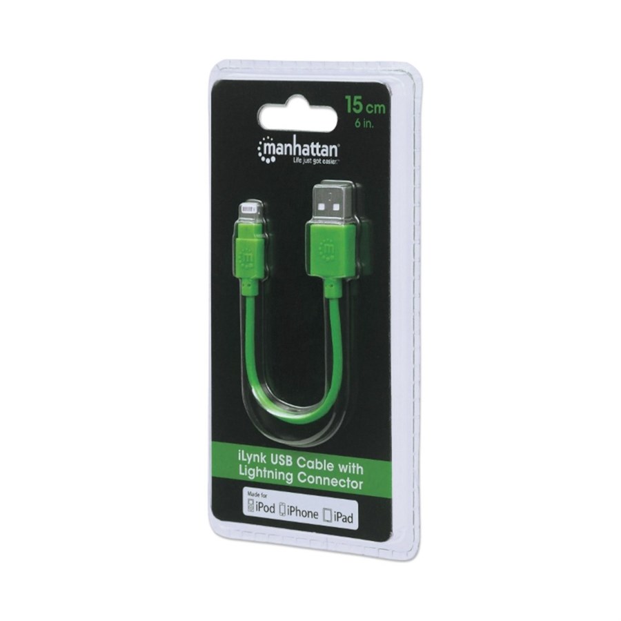 Кабель для iPhone 5/6/Ipad 4, 0.15м, зелений, Manhattan