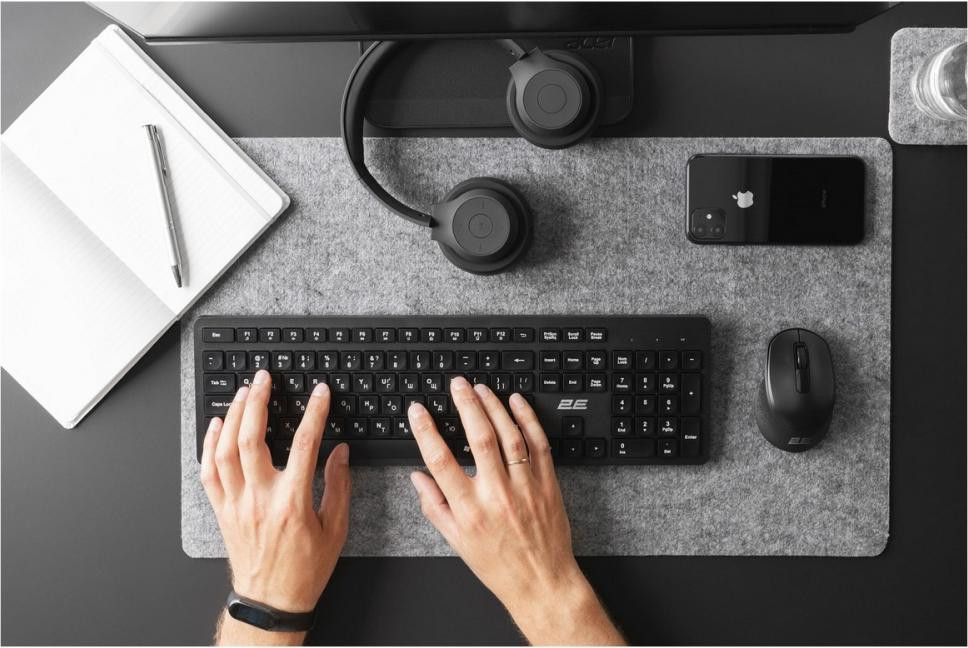 Клавіатура бездротова, 2E KS260 WL EN/UKR Black