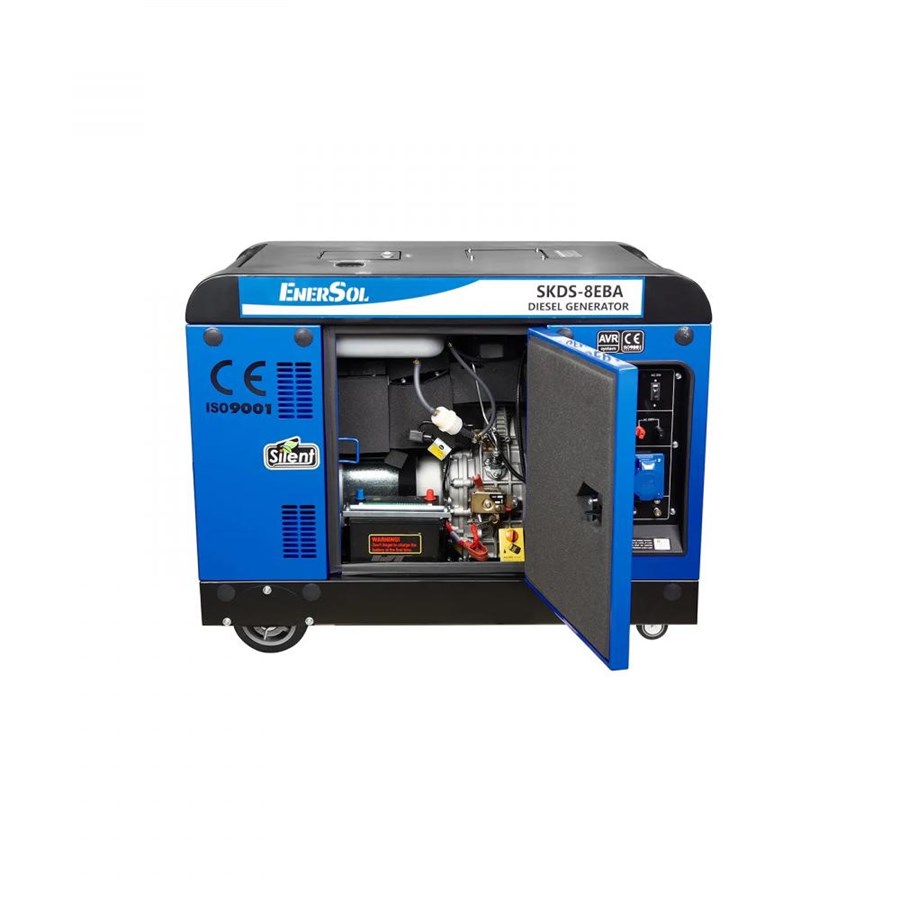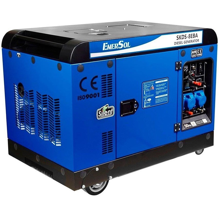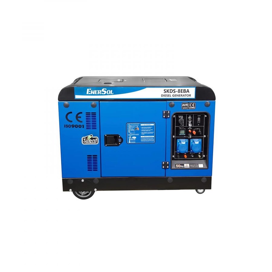 Генератор дизельний EnerSol, 230В (1 фаза), 7.5/8кВт, електростартер, AVR, кожух, 221кг