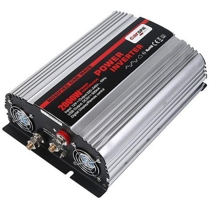 Інвертор Carspa-2000-122 (2000Вт), 12/220V, approximated, 2Shuko, USB, клеми, Box Q4
