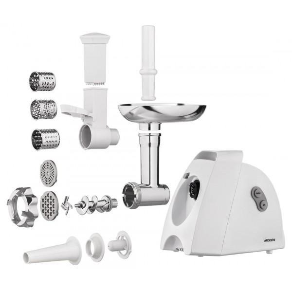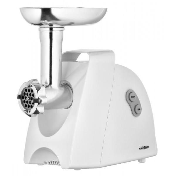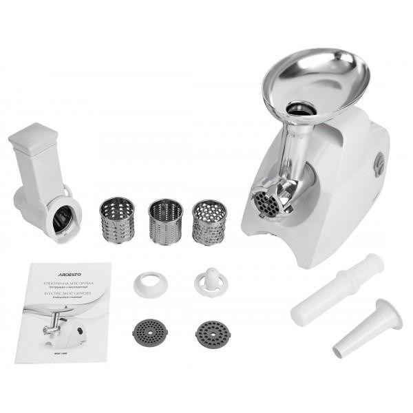М'ясорубка Ardesto, 1900Вт, 1.8кг/хв, 3 решітки, насадка для ковбас, кеббе, 4 терки, пластик, білий