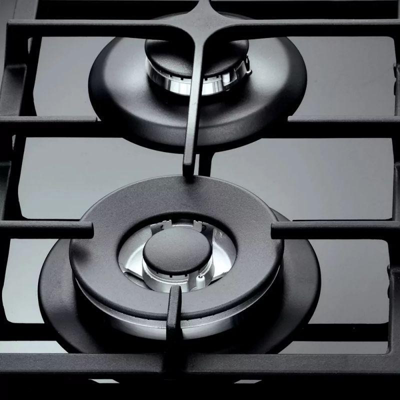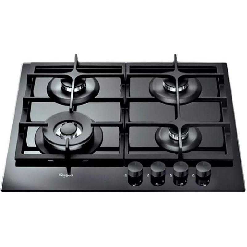 Варильна поверхня Whirlpool газова на склі, 60см, чавун, конфорка з подвійним рядом полум'я, чорний